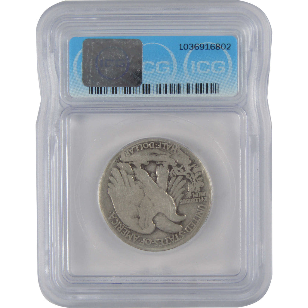 A genuine 1921 D Liberty Walking Silver Half Dollar Coin, graded and certified G 4 by ICG. Contains 90% Silver