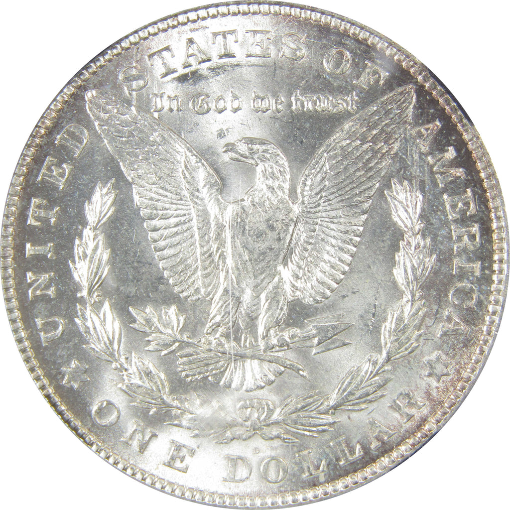 This large 90% silver Morgan dollar bears George T. Morgan's classic depiction of Liberty facing left in a Phrygian cap and a spray of leaves held by a ribbon inscribed LIBERTY. The reverse features an eagle clutching a branch and three arrows.