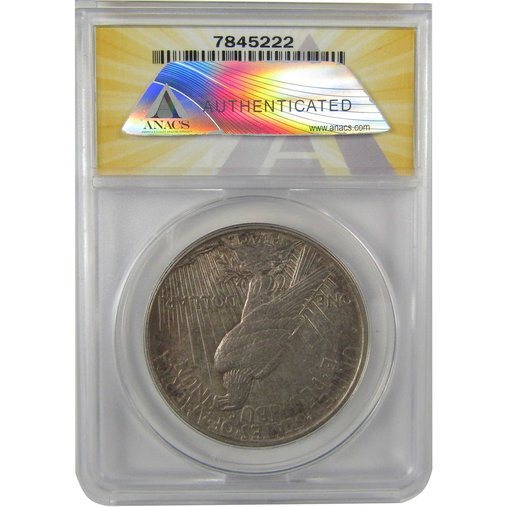A genuine 1921 High Relief Peace Silver Dollar Coin, graded and certified AU 53 Details by ANACS. Contains 90% Silver. Cleaned