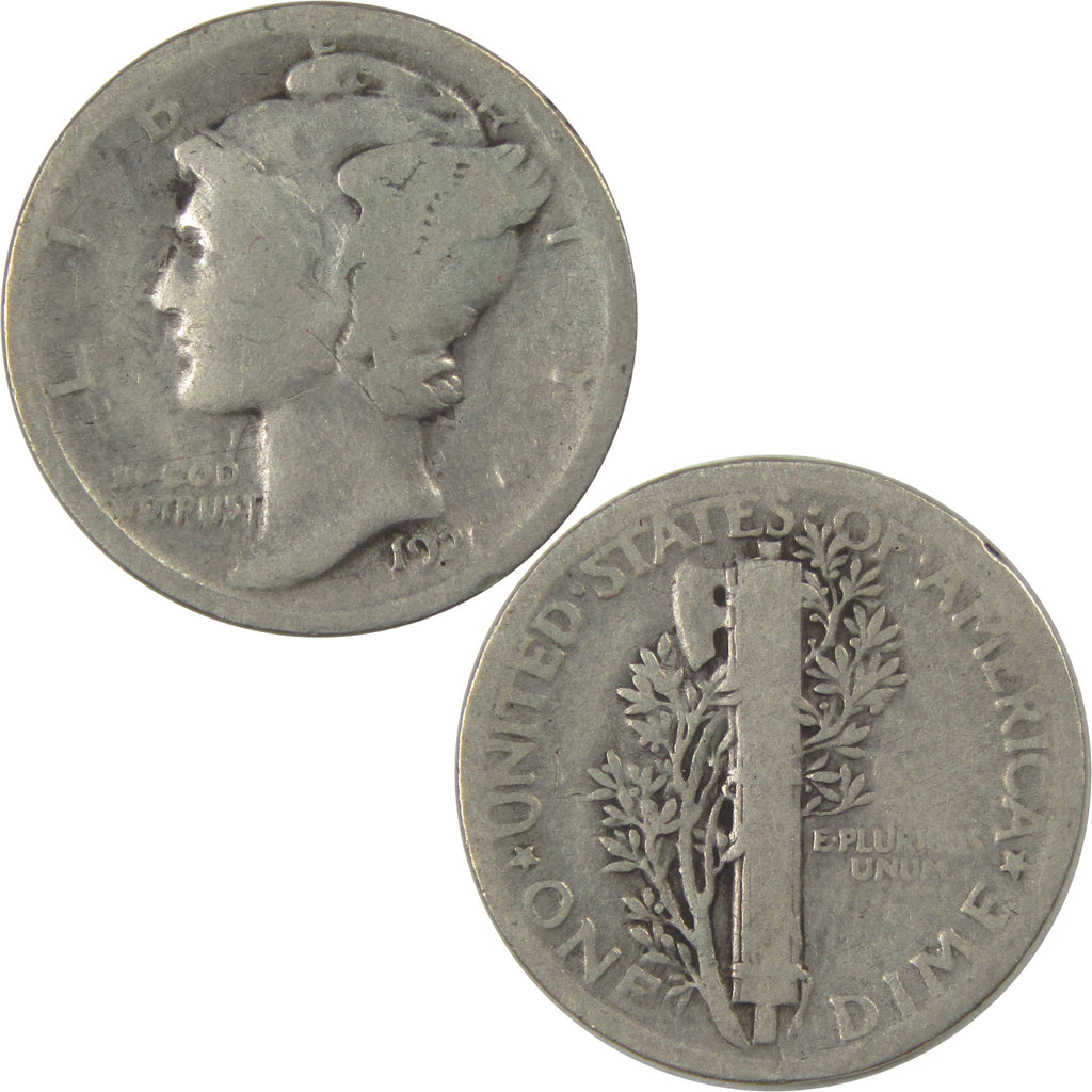 This 90% silver Mercury dime was designed by A.A. Weinman, who also created the Liberty Walking half dollars of 1916-1947. Its obverse features Liberty in a winged cap to symbolize freedom of thought. The reverse depicts a fasces against a branch in the background.