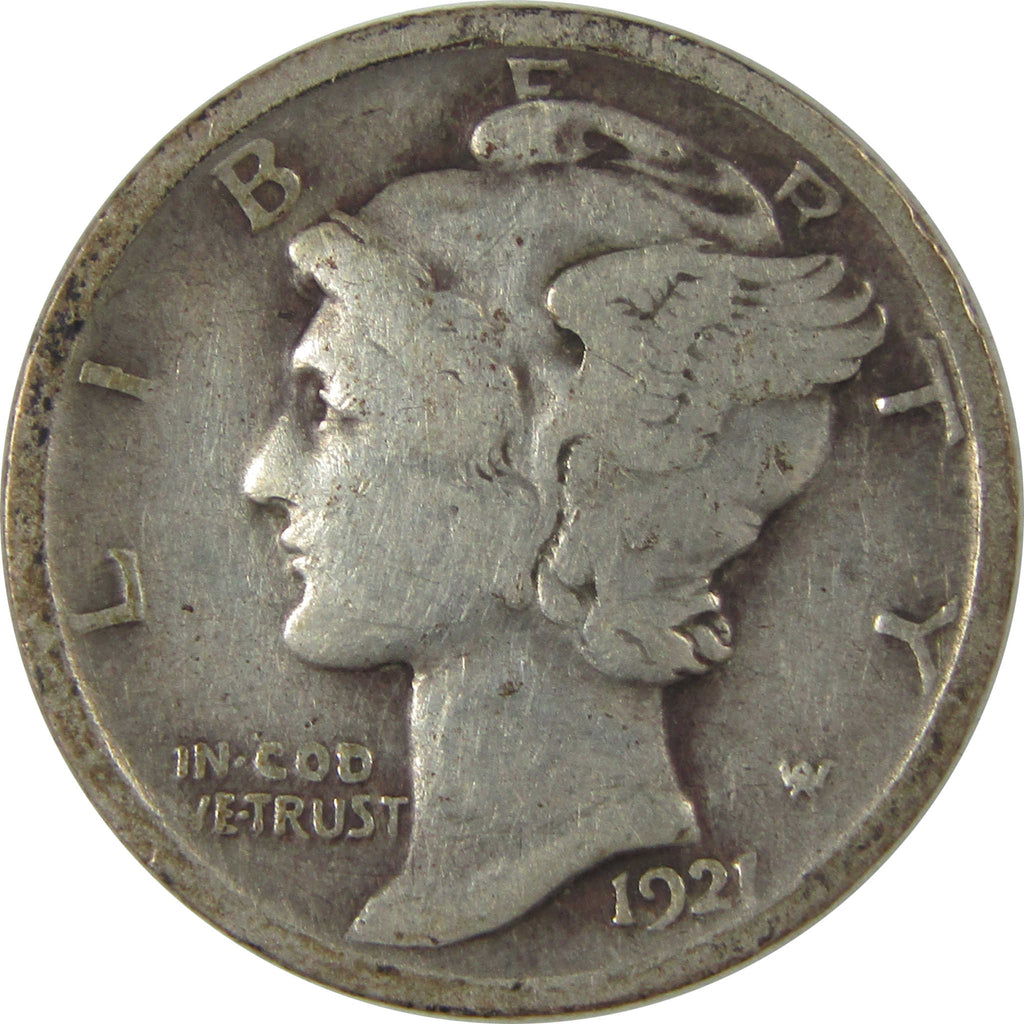 A genuine 1921 Mercury Silver Dime Coin, in VG Very Good Condition. Contains 90% Silver