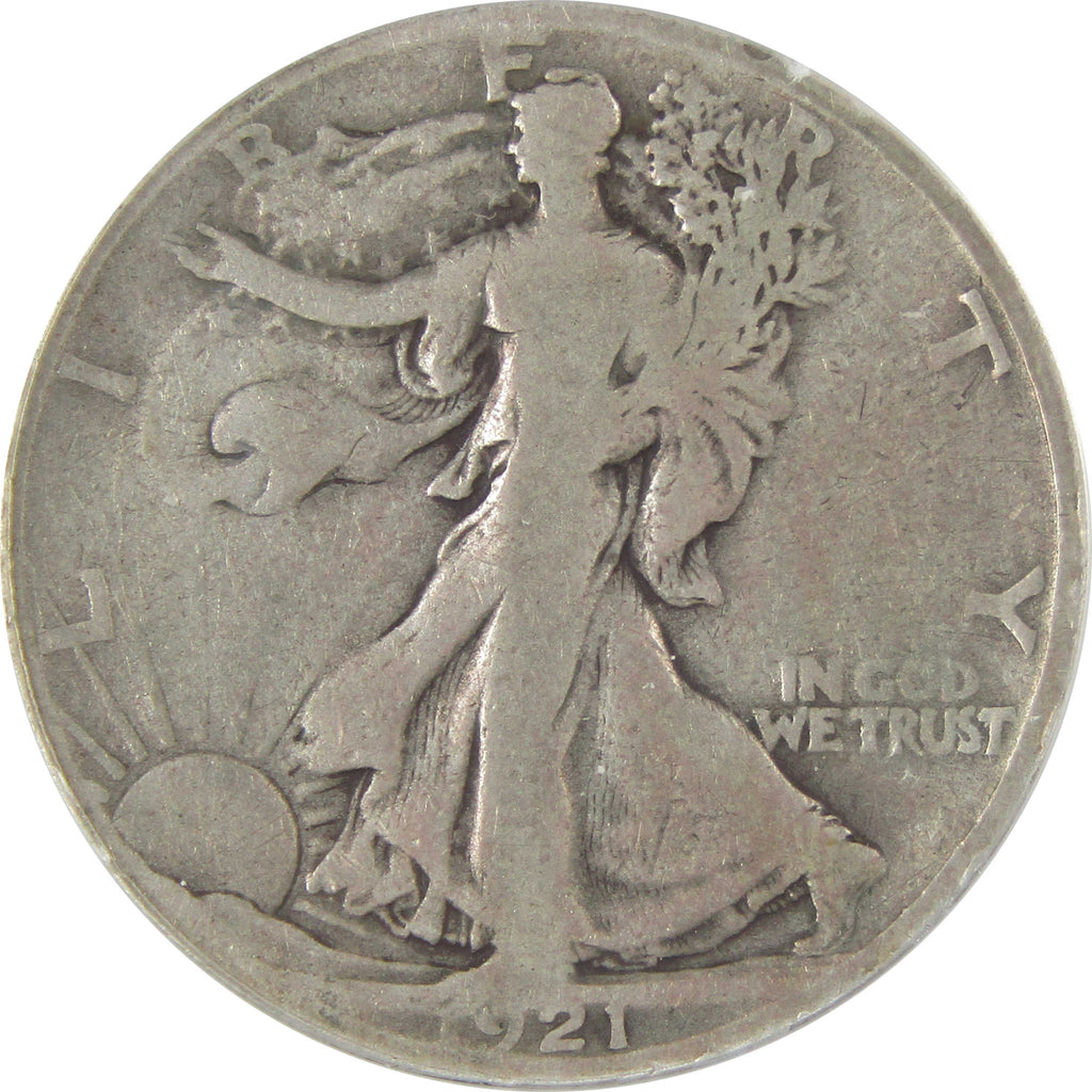 A genuine 1921 S Liberty Walking Silver Half Dollar Coin, graded and certified G 6 by ANACS. Contains 90% Silver