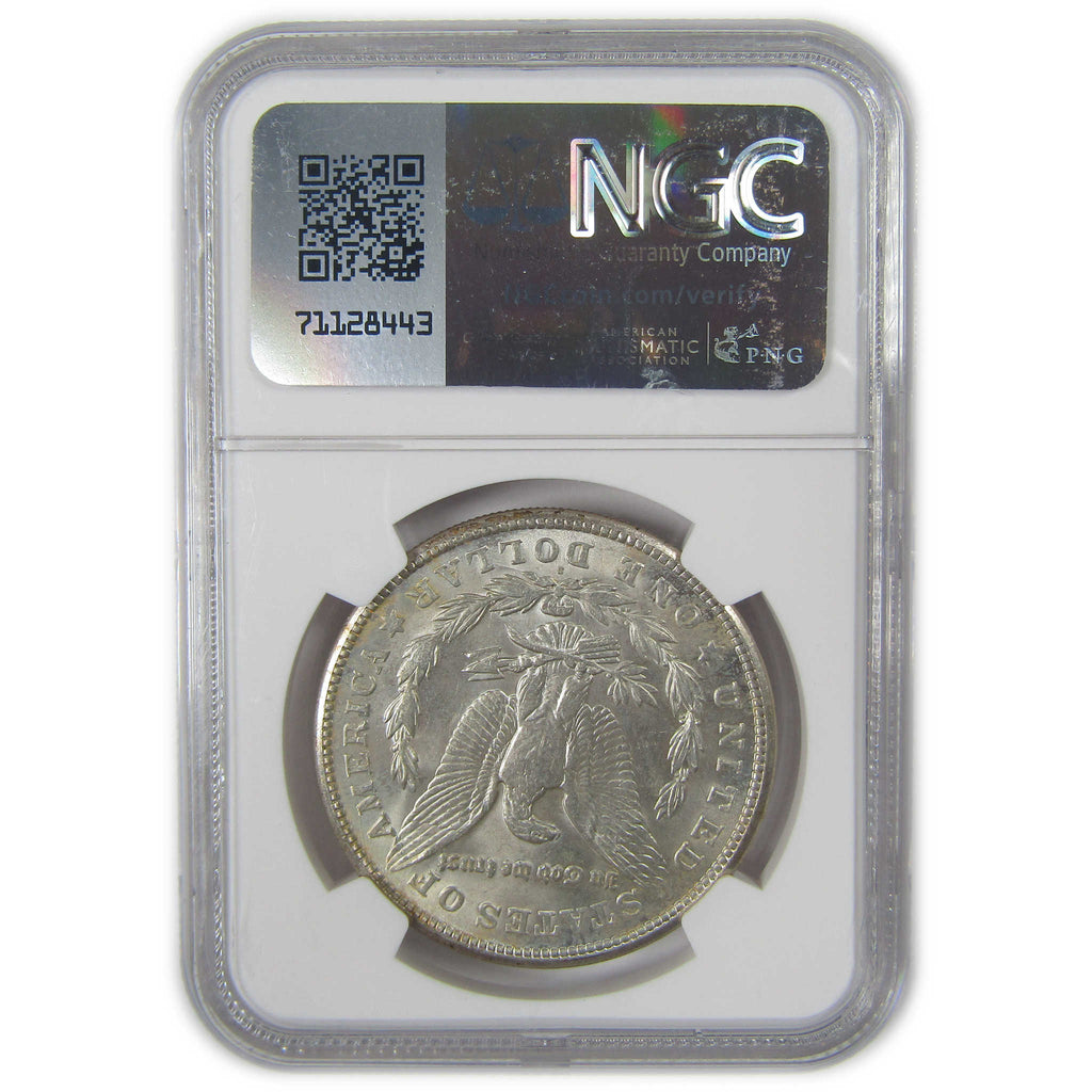 This large 90% silver Morgan dollar bears George T. Morgan's classic depiction of Liberty facing left in a Phrygian cap and a spray of leaves held by a ribbon inscribed LIBERTY. The reverse features an eagle clutching a branch and three arrows.