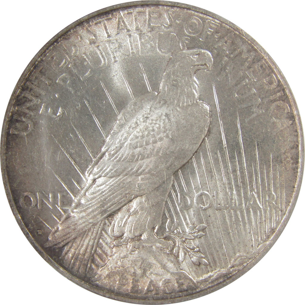 Designed by Anthony de Francisci, this 90% silver Peace depicts a left-facing Liberty wearing a diadem of spikes. The reverse shows an eagle perched on a rock with a laurel branch above the word PEACE, facing the rays of a rising sun.