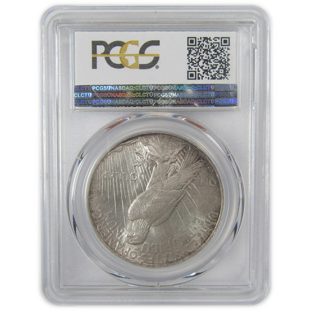 A genuine 1922 D Peace Silver Dollar Coin, graded and certified MS 62 by PCGS. Contains 90% Silver