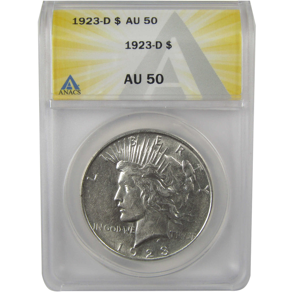 1923 D Peace Dollar AU 50 ANACS Silver $1 Coin SKU:I22152