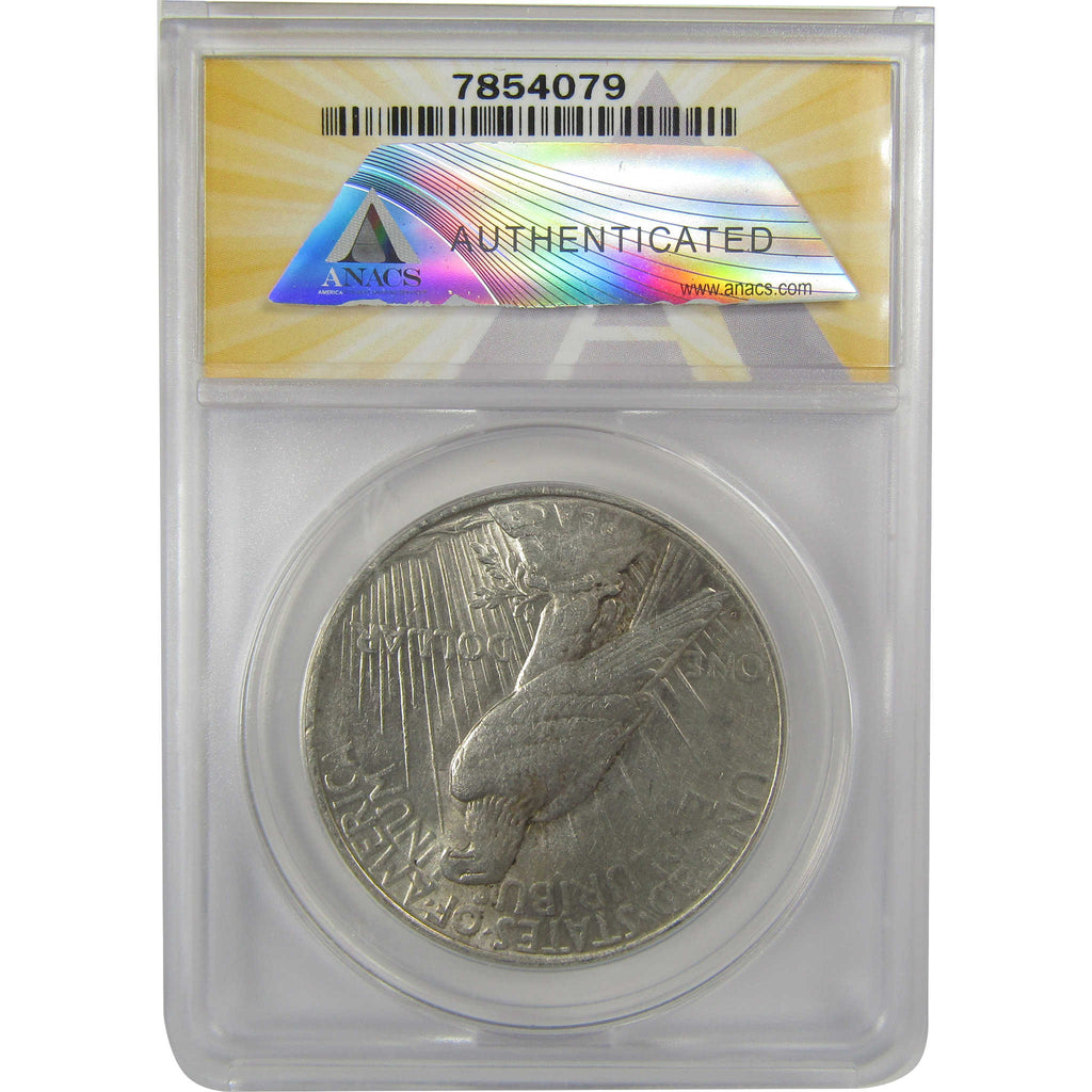 A genuine 1923 D Peace Silver Dollar Coin, graded and certified AU 53 by ANACS. Contains 90% Silver