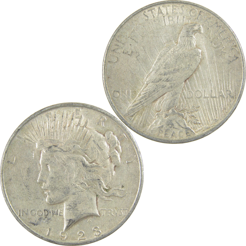 A genuine 1923 D Peace Silver Dollar Coin, in VF Very Fine Condition. Contains 90% Silver