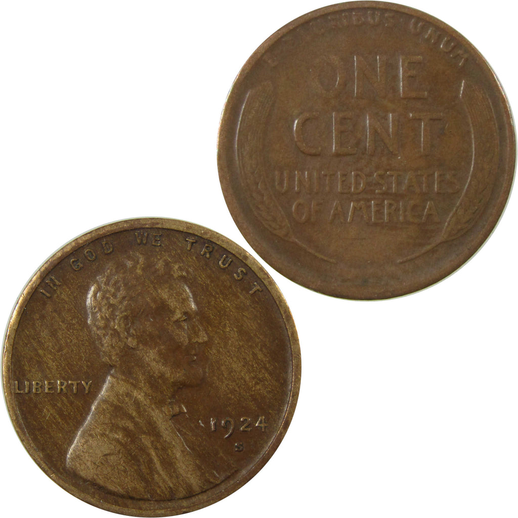 A genuine 1924 S Lincoln Wheat Cent Penny Coin, in VF Very Fine Condition