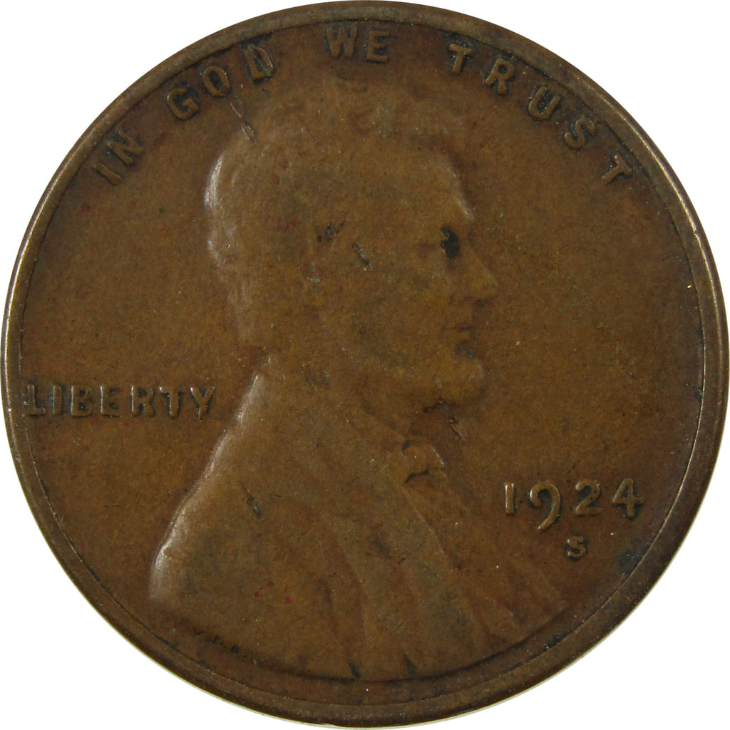 A genuine 1924 S Lincoln Wheat Cent Penny Coin, in VG Very Good Condition