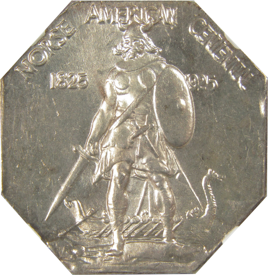 A genuine 1925 Norse American Thick Silver Medal, graded and certified MS 64 by NGC. Contains 90% Silver
