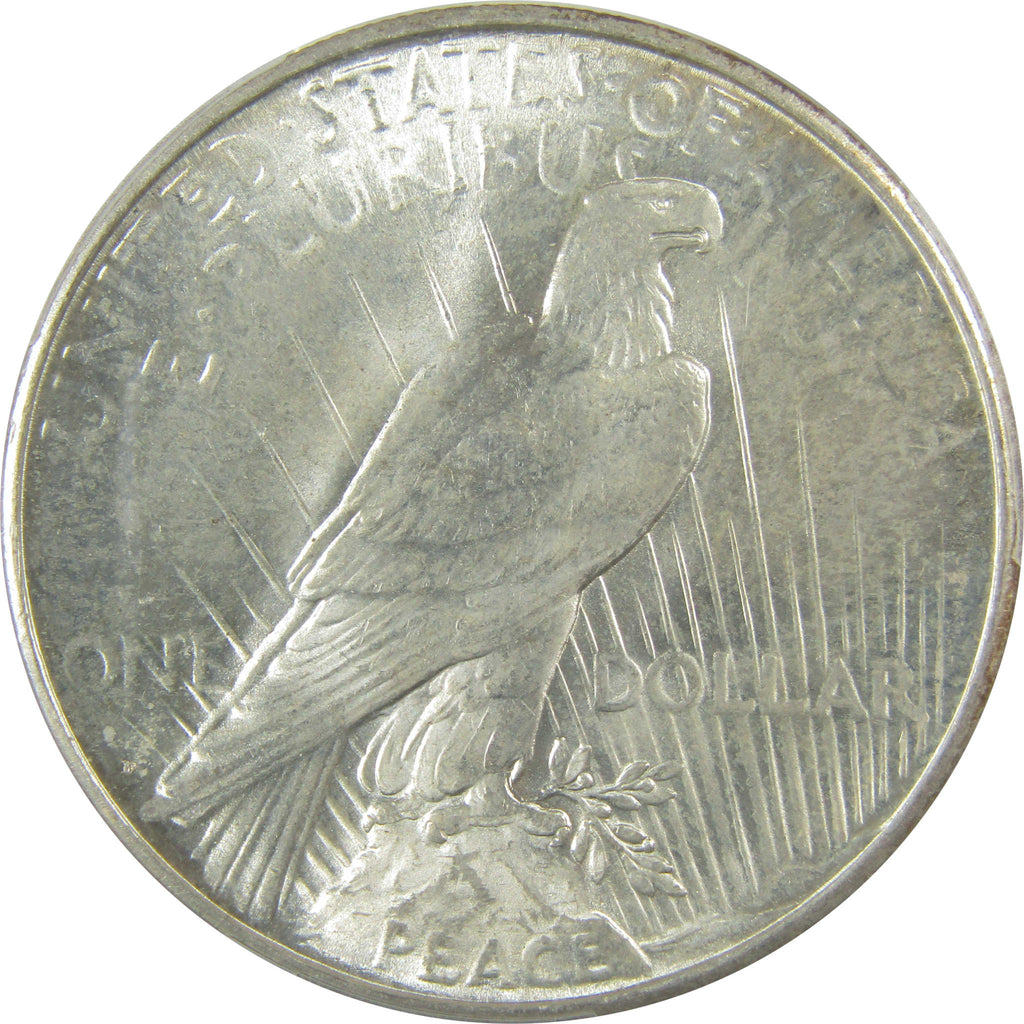 Designed by Anthony de Francisci, this 90% silver Peace depicts a left-facing Liberty wearing a diadem of spikes. The reverse shows an eagle perched on a rock with a laurel branch above the word PEACE, facing the rays of a rising sun.