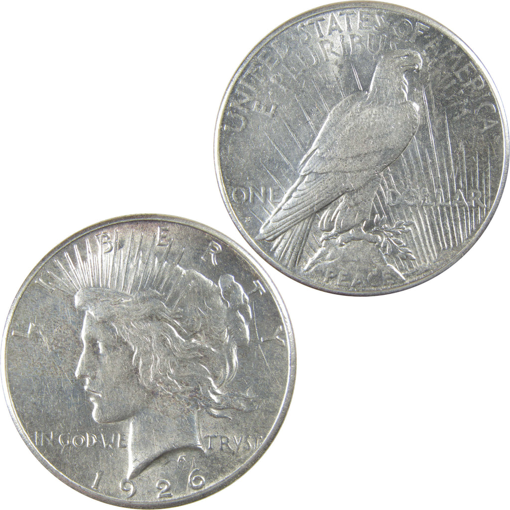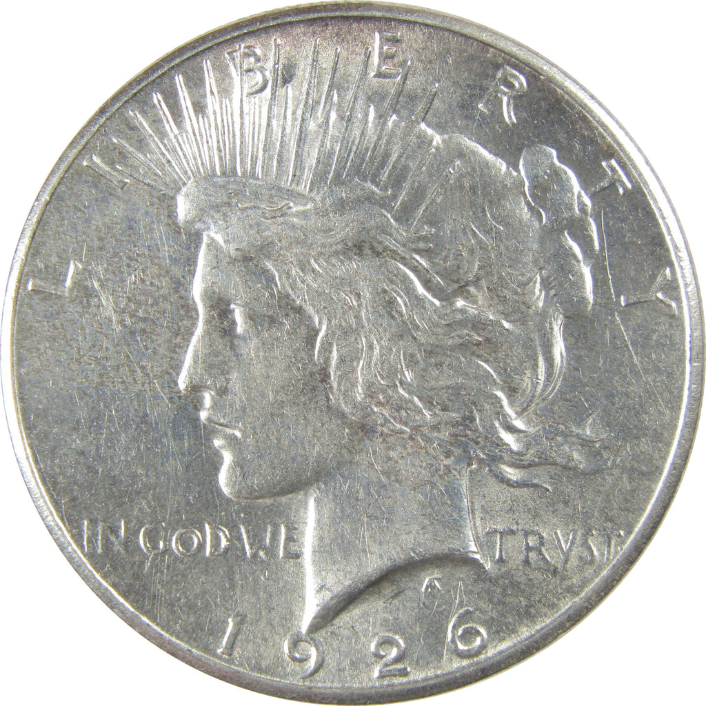 A genuine 1926 S Peace Silver Dollar Coin, in AU About Uncirculated Condition. Contains 90% Silver