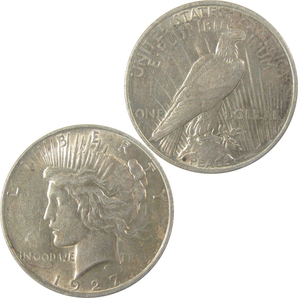 A genuine 1927 D Peace Silver Dollar Coin, in AU About Uncirculated Condition. Contains 90% Silver