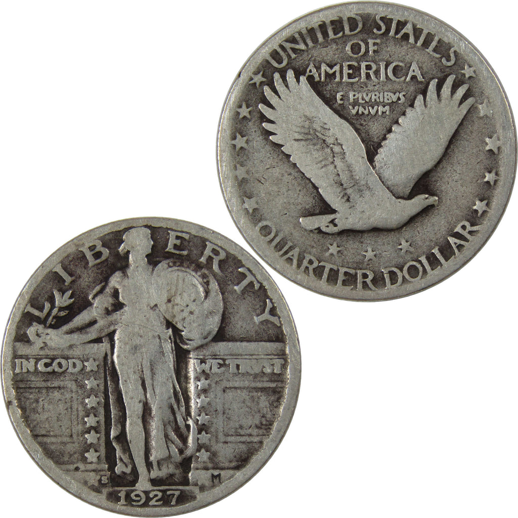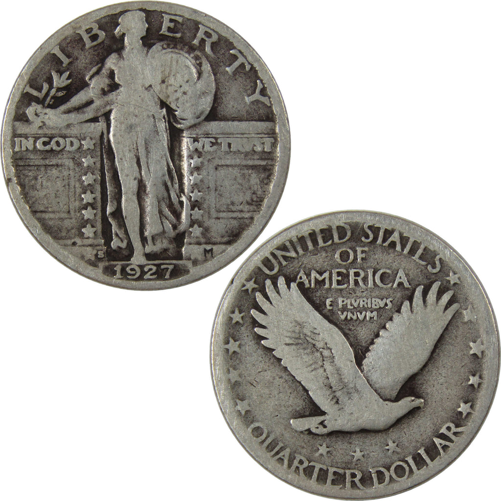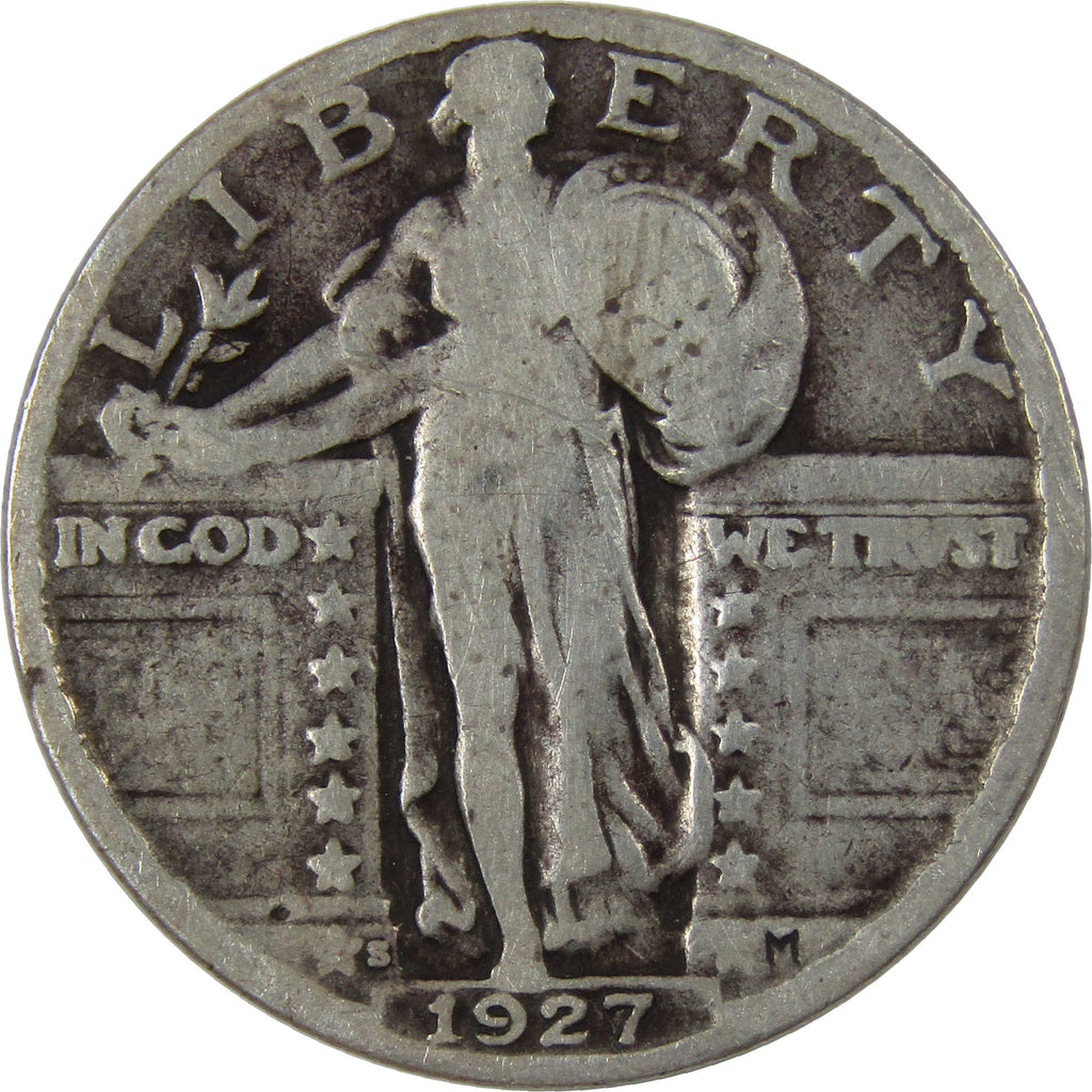 A genuine 1927 S Standing Liberty Silver Quarter Coin, in G Good Condition. Contains 90% Silver