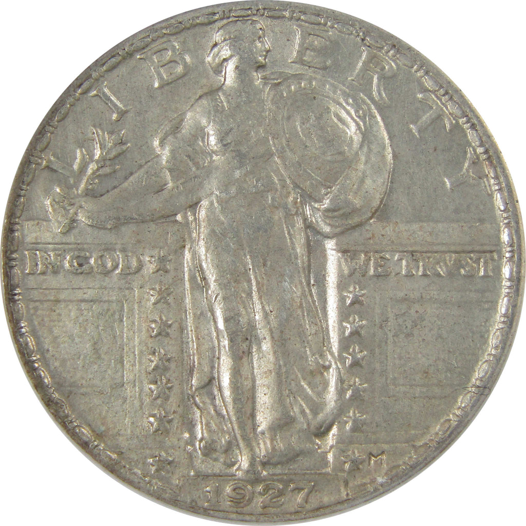 A genuine 1927 Standing Liberty Silver Quarter Coin, graded and certified AU 55 Details by ANACS. Contains 90% Silver. Cleaned