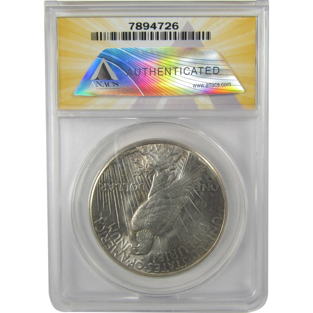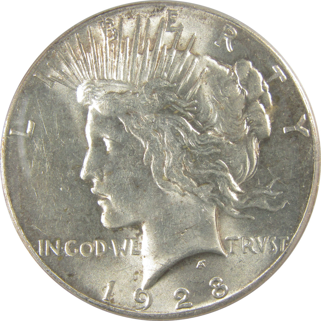 A genuine 1928 Peace Silver Dollar Coin, graded and certified MS 62 by ANACS. Contains 90% Silver