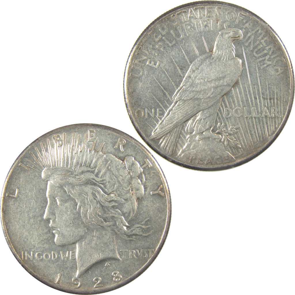 A genuine 1928 Peace Silver Dollar Coin, in XF EF Extremely Fine Condition. Contains 90% Silver