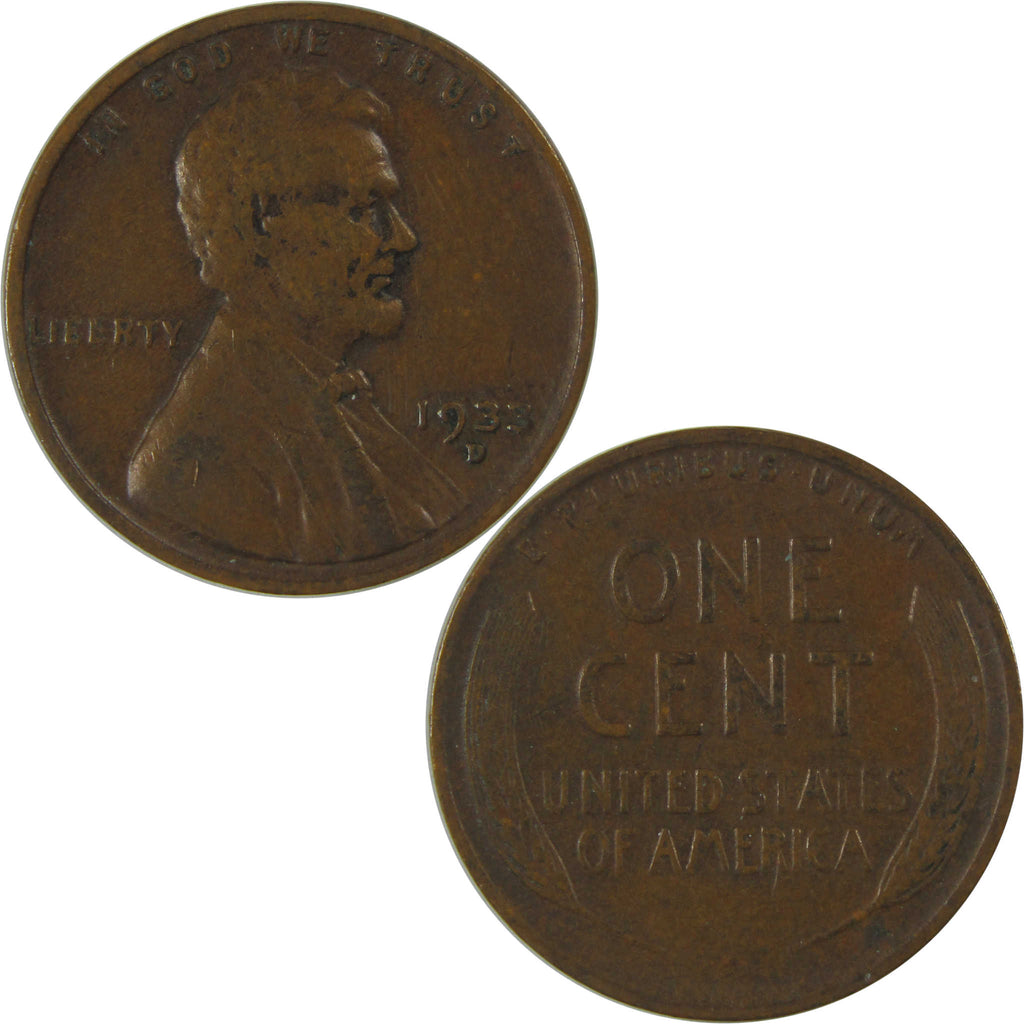 1933 D Lincoln Wheat Cent VF Very Fine Penny 1c Coin SKU:I23774