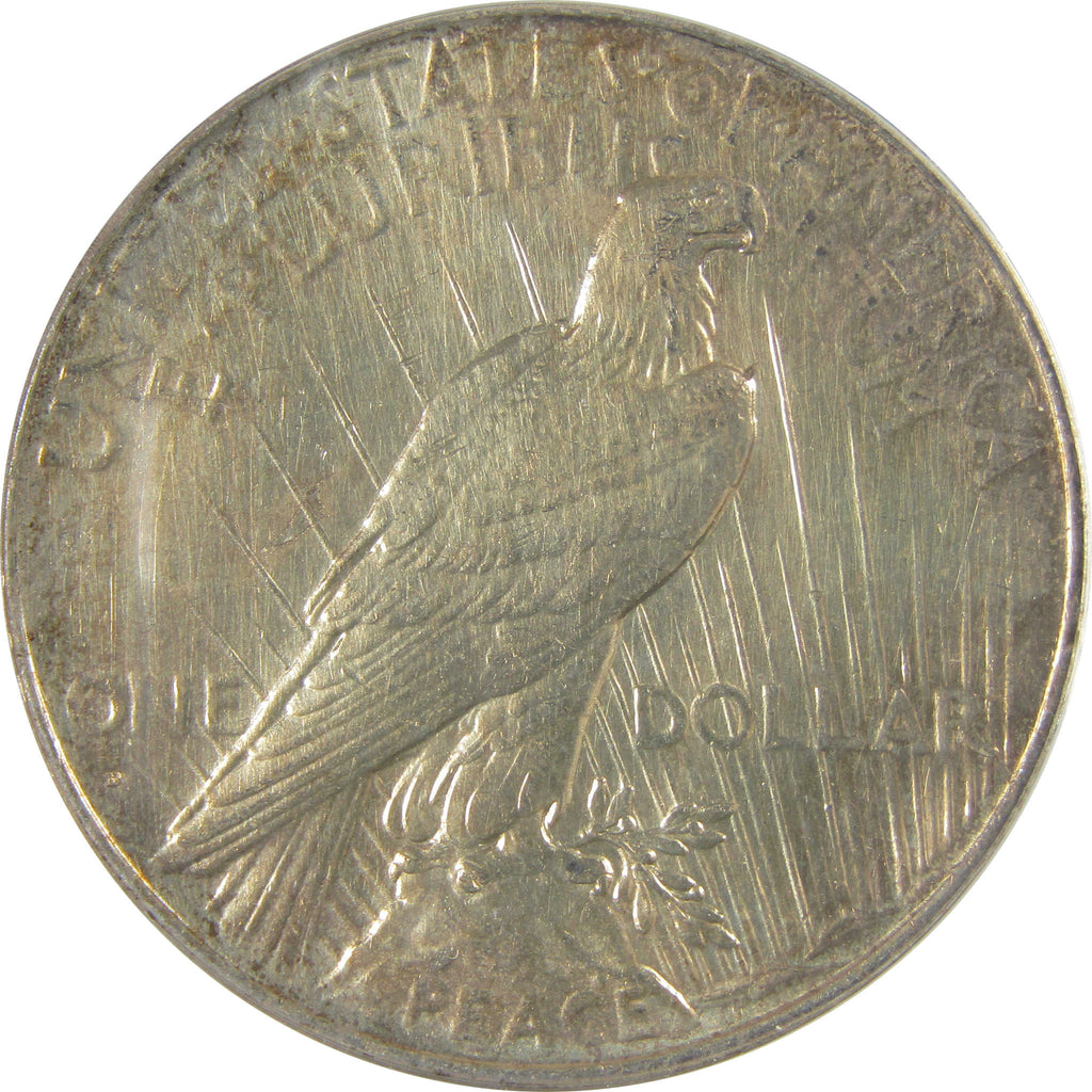 Designed by Anthony de Francisci, this 90% silver Peace depicts a left-facing Liberty wearing a diadem of spikes. The reverse shows an eagle perched on a rock with a laurel branch above the word PEACE, facing the rays of a rising sun.