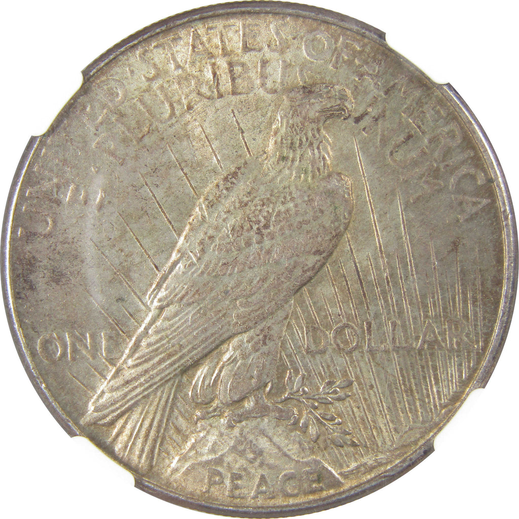Designed by Anthony de Francisci, this 90% silver Peace depicts a left-facing Liberty wearing a diadem of spikes. The reverse shows an eagle perched on a rock with a laurel branch above the word PEACE, facing the rays of a rising sun.