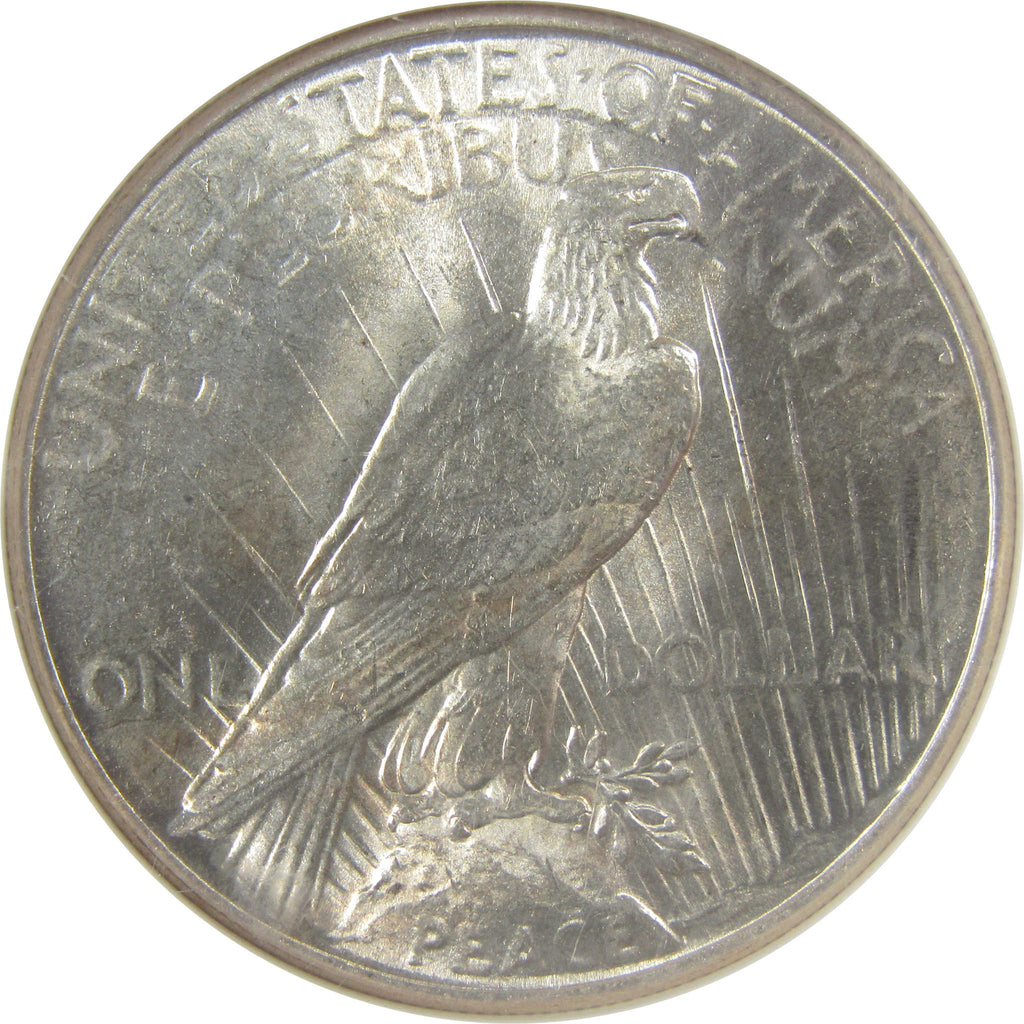Designed by Anthony de Francisci, this 90% silver Peace depicts a left-facing Liberty wearing a diadem of spikes. The reverse shows an eagle perched on a rock with a laurel branch above the word PEACE, facing the rays of a rising sun.