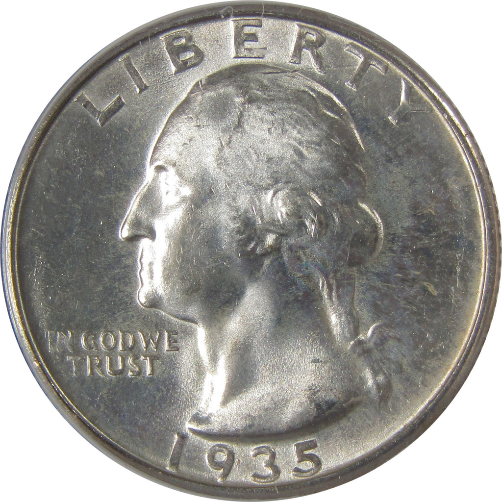 A genuine 1935 D Washington Silver Quarter Coin, graded and certified MS 64 by ANACS. Contains 90% Silver
