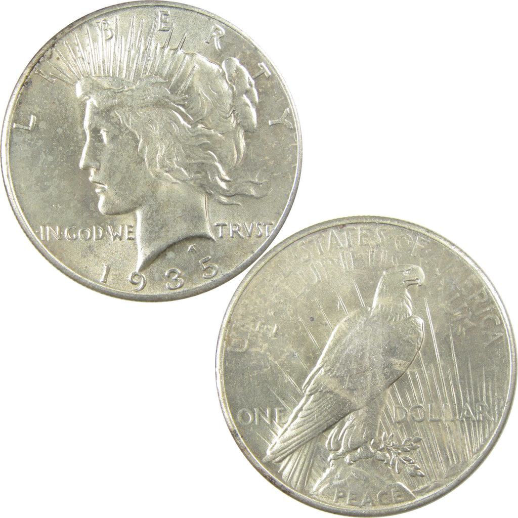 A genuine 1935 Peace Silver Dollar Coin, in Borderline Uncirculated Condition. Contains 90% Silver