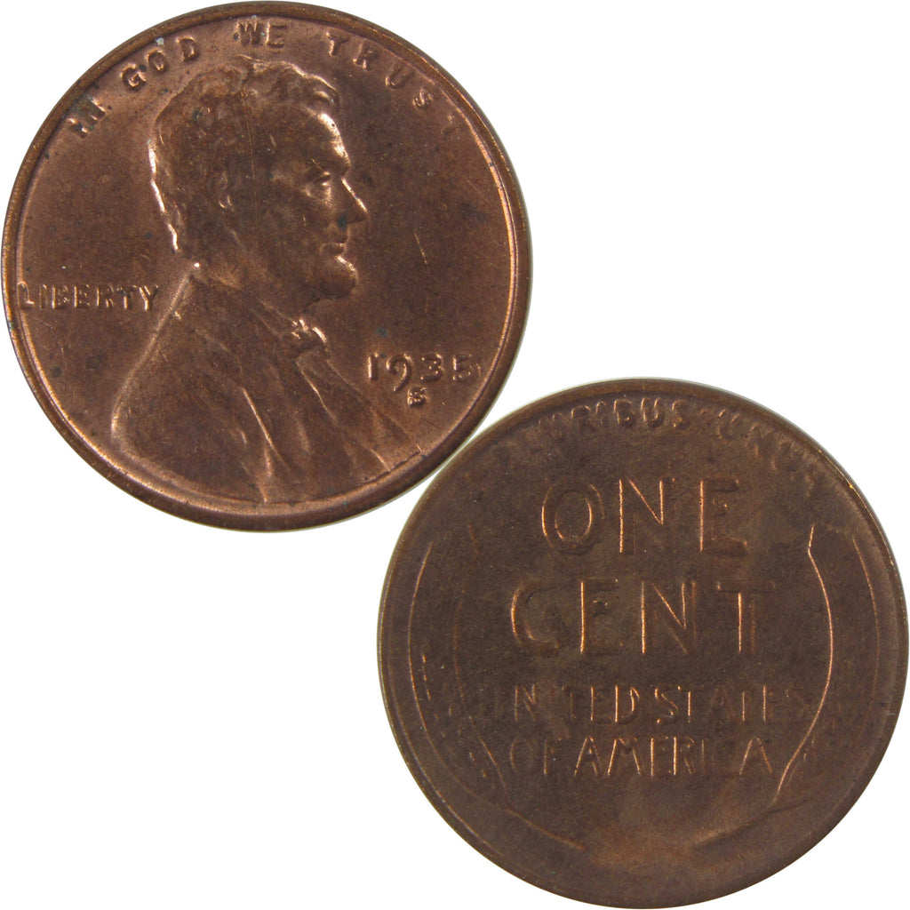 A genuine 1935 S Lincoln Wheat Cent Penny Coin, in Uncirculated Mint State Condition