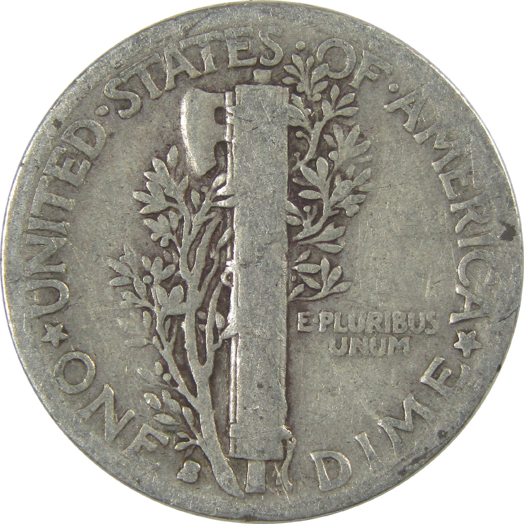 This 90% silver Mercury dime was designed by A.A. Weinman, who also created the Liberty Walking half dollars of 1916-1947. Its obverse features Liberty in a winged cap to symbolize freedom of thought. The reverse depicts a fasces against a branch in the background.