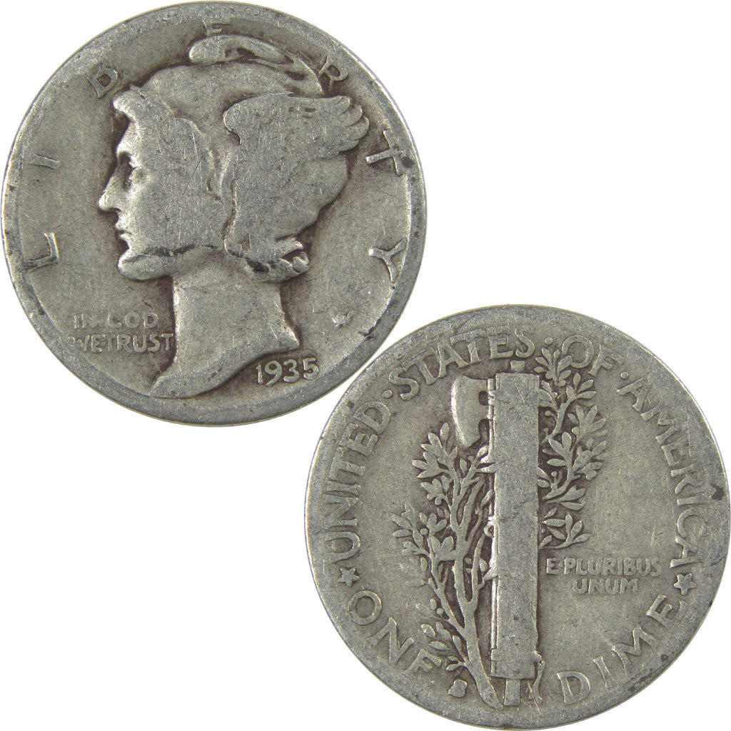 A genuine 1935 S Mercury Silver Dime Coin, in Circulated Condition. Contains 90% Silver