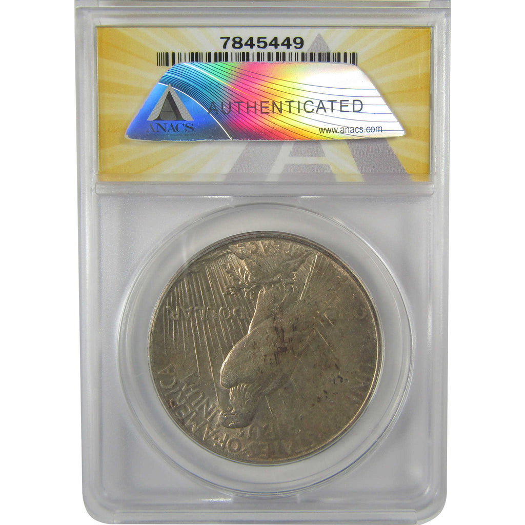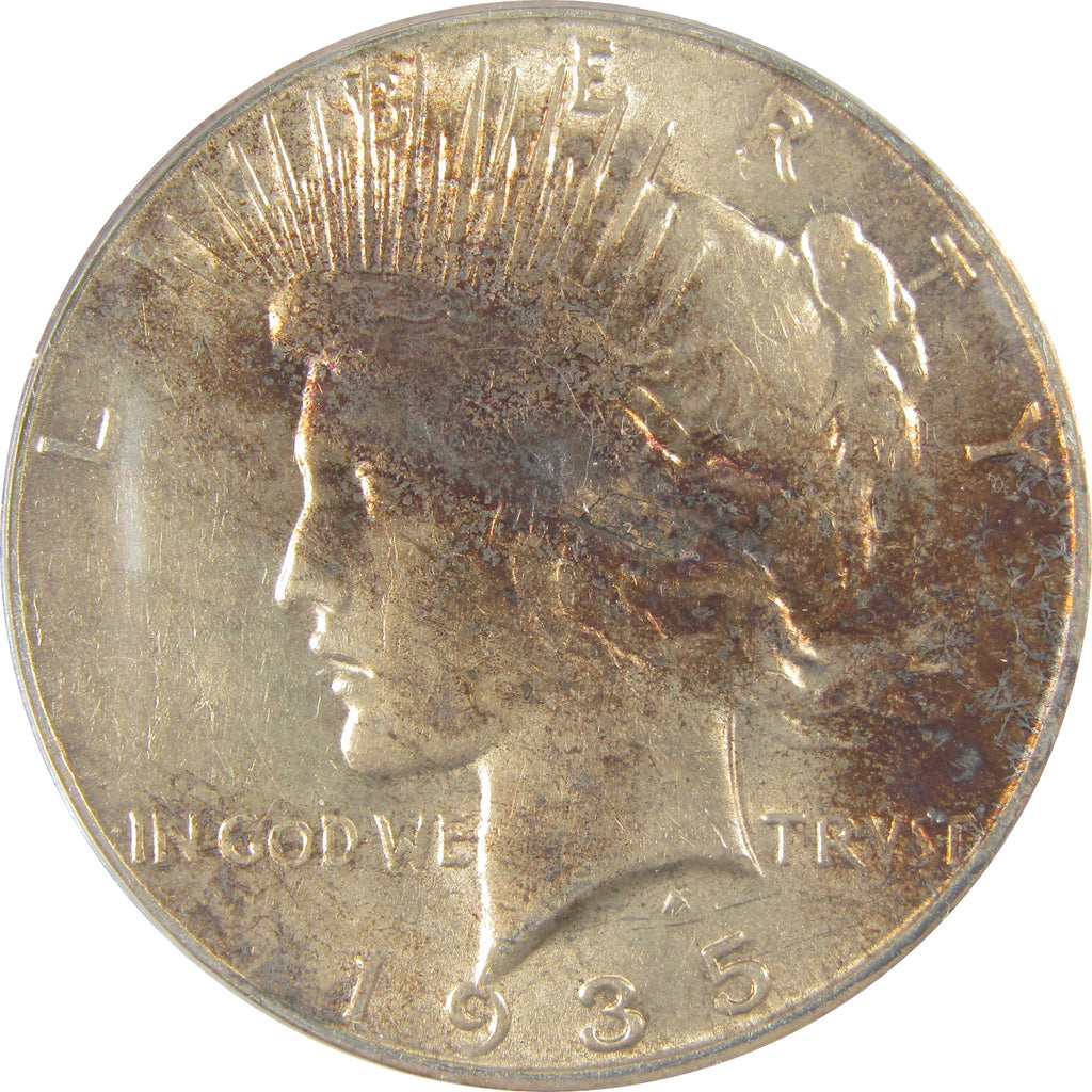 A genuine 1935 S Peace Silver Dollar Coin, graded and certified AU 50 Details by ANACS. Contains 90% Silver. Environmental Damage