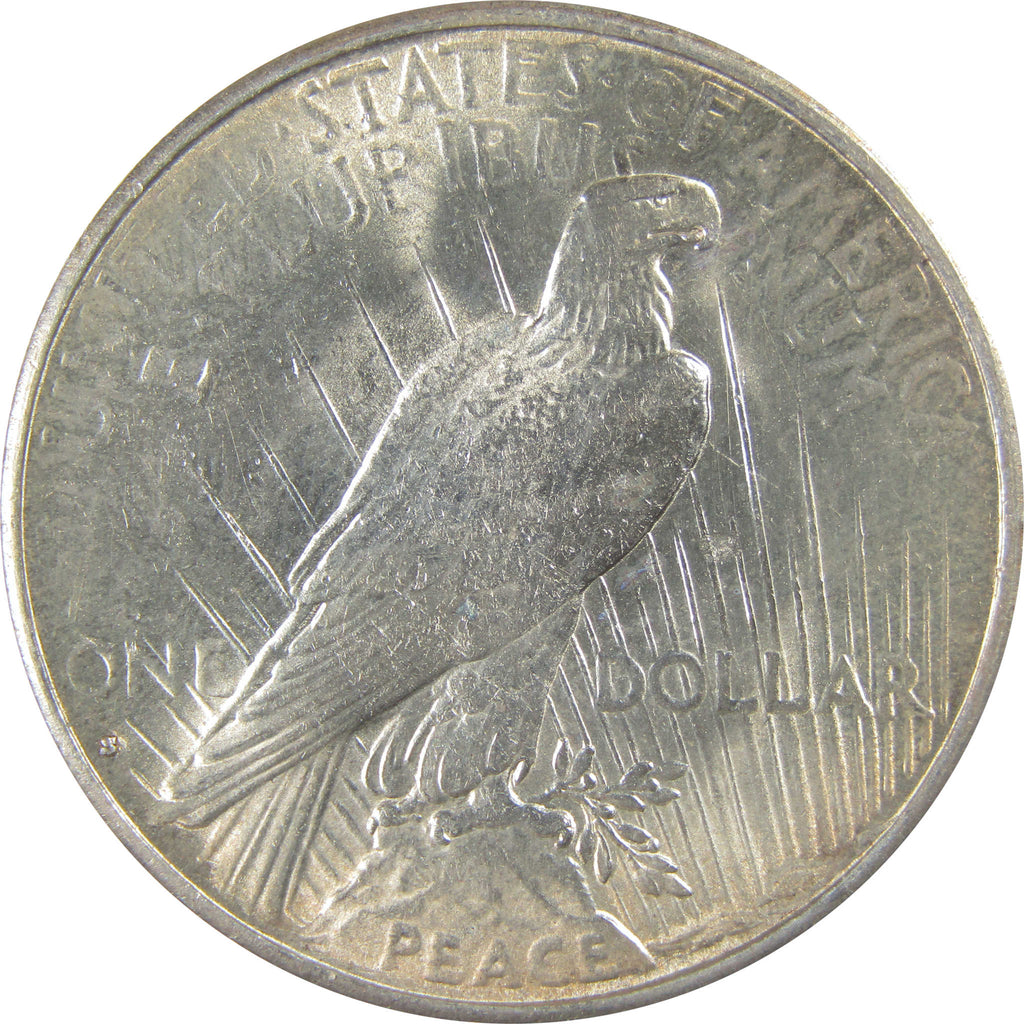 Designed by Anthony de Francisci, this 90% silver Peace depicts a left-facing Liberty wearing a diadem of spikes. The reverse shows an eagle perched on a rock with a laurel branch above the word PEACE, facing the rays of a rising sun.