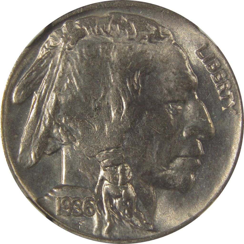 A genuine 1936 D Indian Head Buffalo Nickel Coin, graded and certified MS 64 by NGC. Comes with a fragment of an original vintage canvas bag embedded in the label