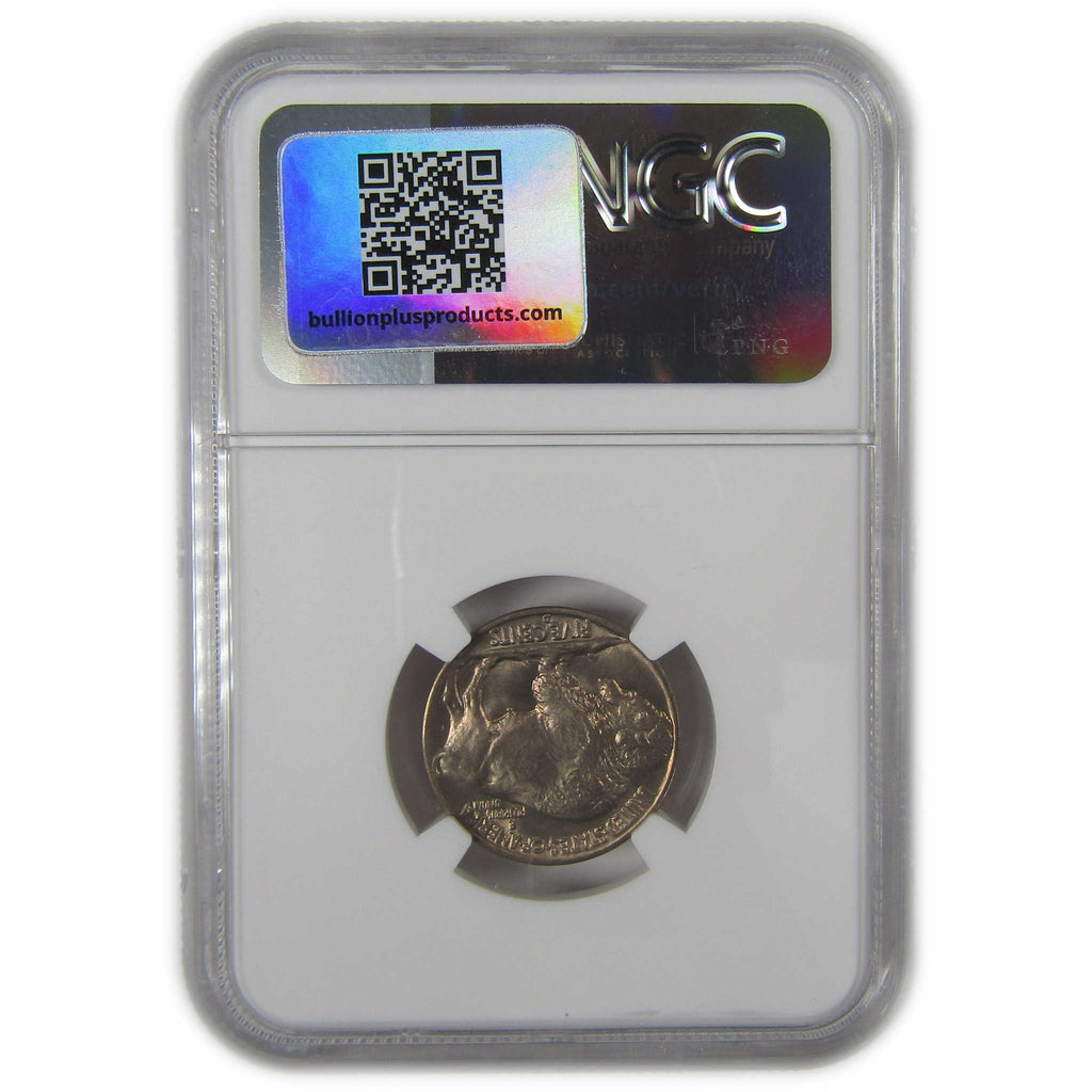 A genuine 1936 D Indian Head Buffalo Nickel Coin, graded and certified MS 66 by NGC. Comes with a fragment of an original vintage canvas bag embedded in the label