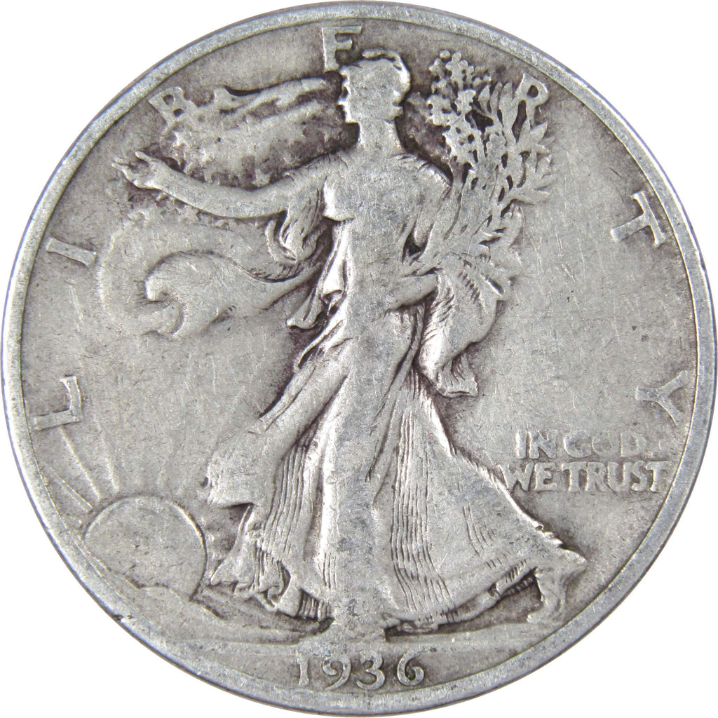 A genuine 1936 S Liberty Walking Silver Half Dollar Coin, in F Fine Condition. Contains 90% Silver