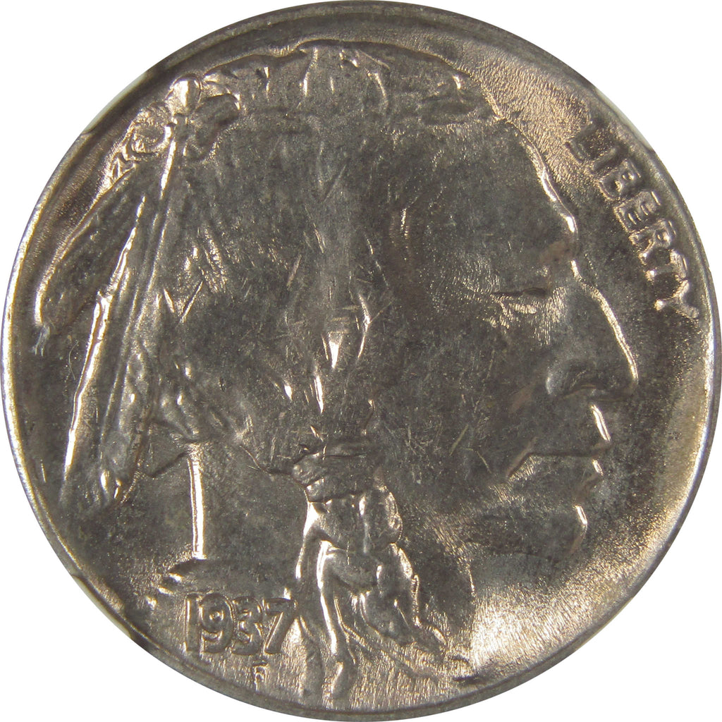 A genuine 1937 S Indian Head Buffalo Nickel Coin, graded and certified MS 66 by NGC. Comes with a fragment of an original vintage canvas bag embedded in the label