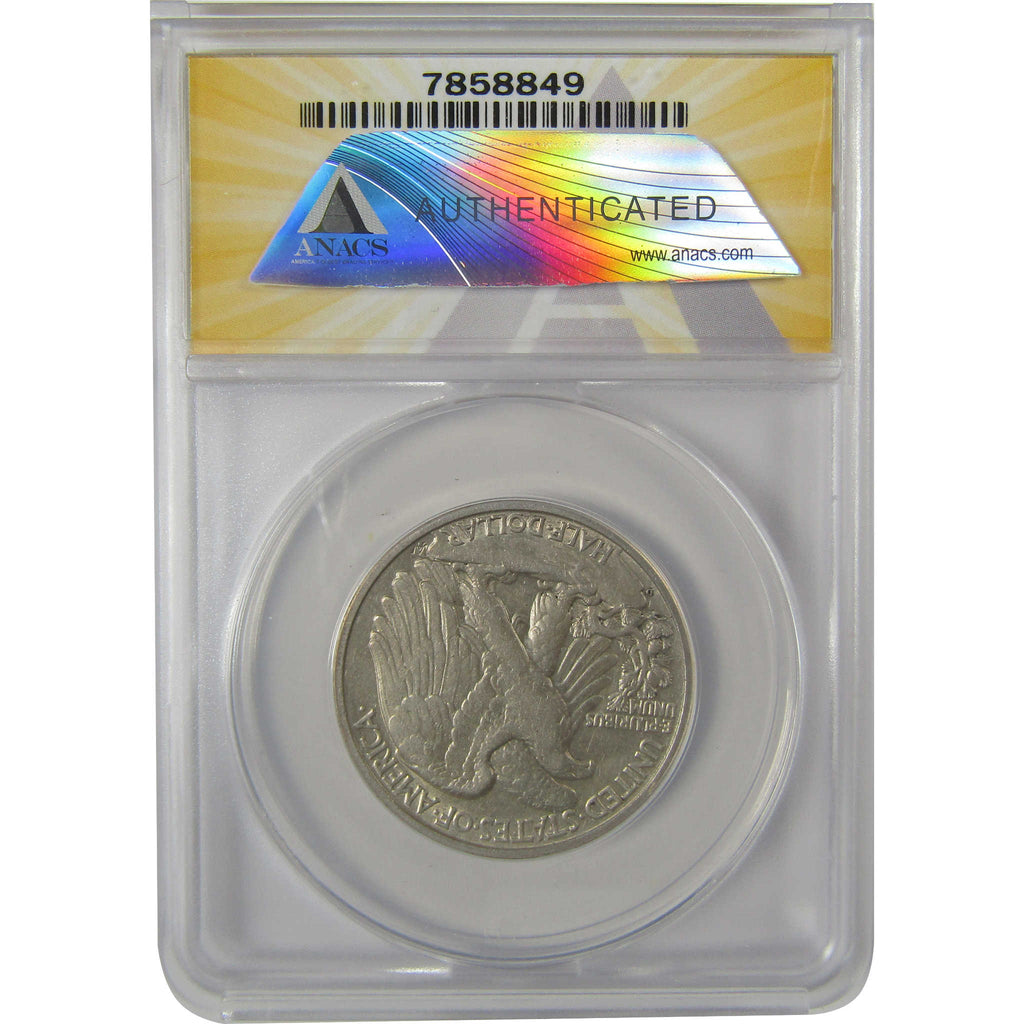 A genuine 1938 D Liberty Walking Silver Half Dollar Coin, graded and certified EF 45 by ANACS. Contains 90% Silver