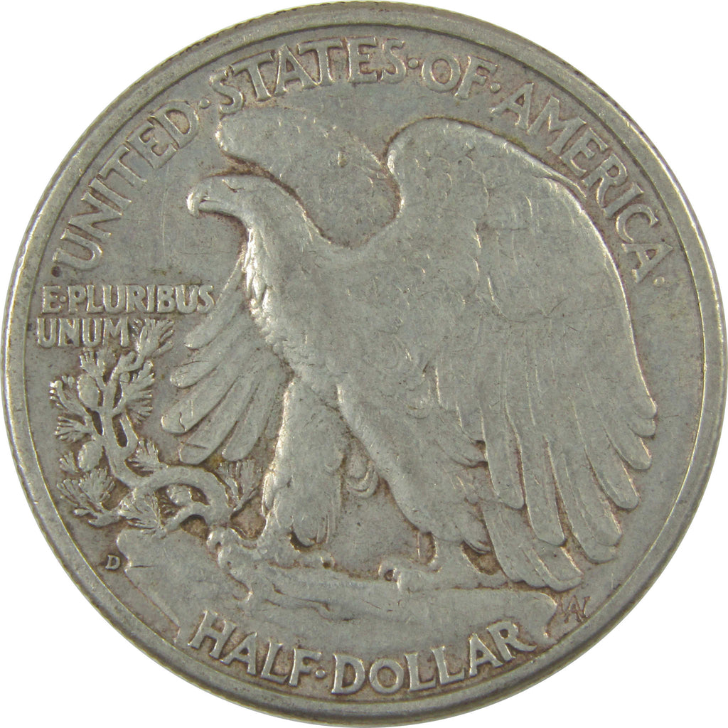 Designed by Adolph A. Weinman, this 90% silver Liberty Walking half dollar is one of America's most beautiful coins. The obverse shows Liberty with arm outstretched, striding towards the dawn of a new day. The reverse depicts an eagle on a rocky crag, where a pine branch grows to symbolize strength.