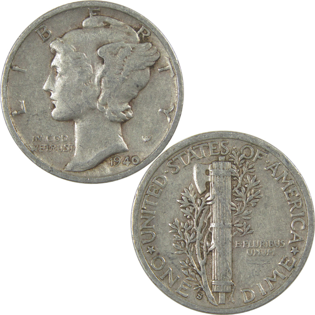 A genuine 1940 S Mercury Silver Dime Coin, in XF EF Extremely Fine Condition. Contains 90% Silver