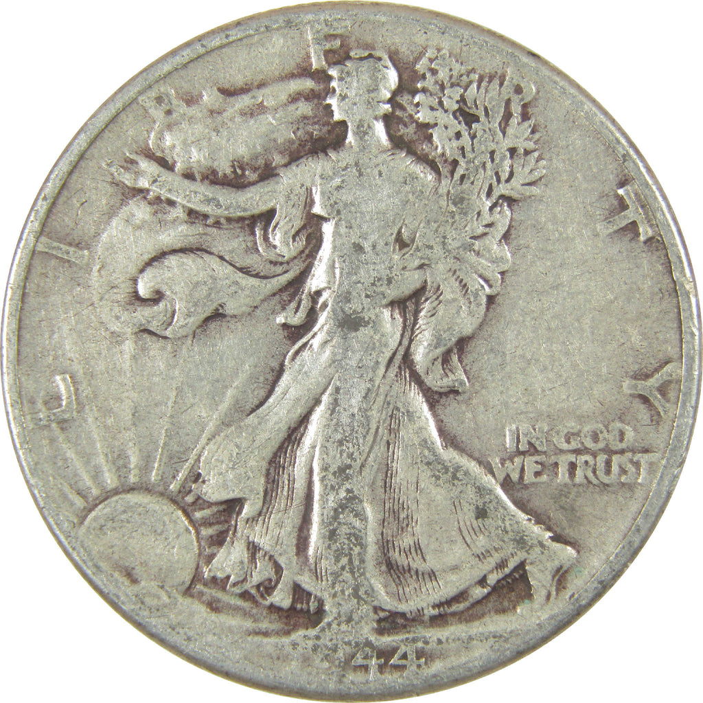 A genuine 1944 Liberty Walking Silver Half Dollar Coin, in G Good Condition. Contains 90% Silver