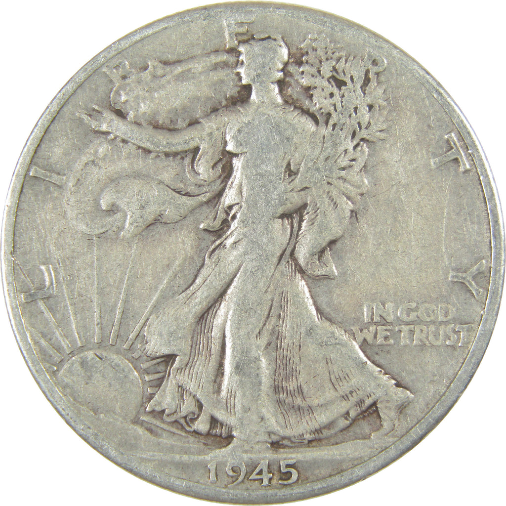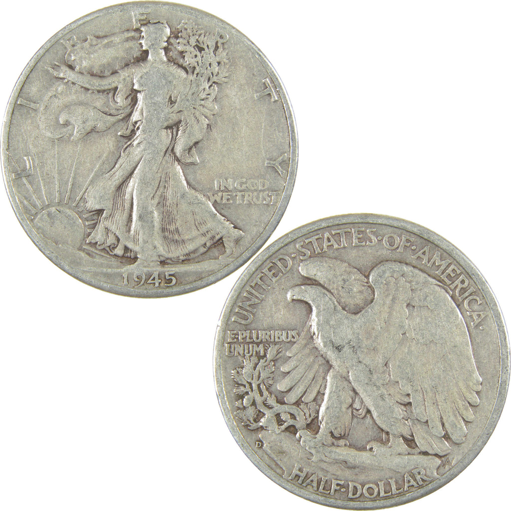 A genuine 1945 D Liberty Walking Silver Half Dollar Coin, in G Good Condition. Contains 90% Silver