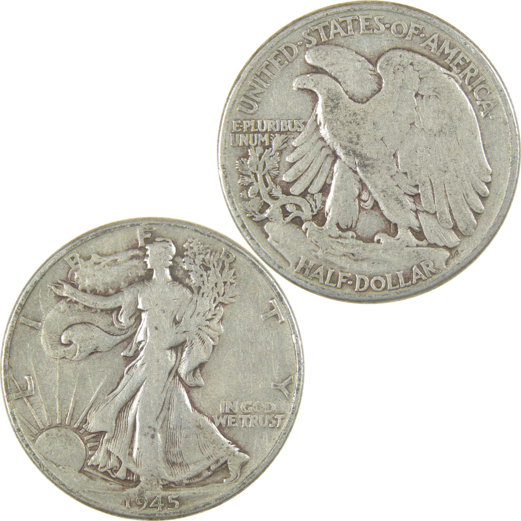 A genuine 1945 Liberty Walking Silver Half Dollar Coin, in G Good Condition. Contains 90% Silver