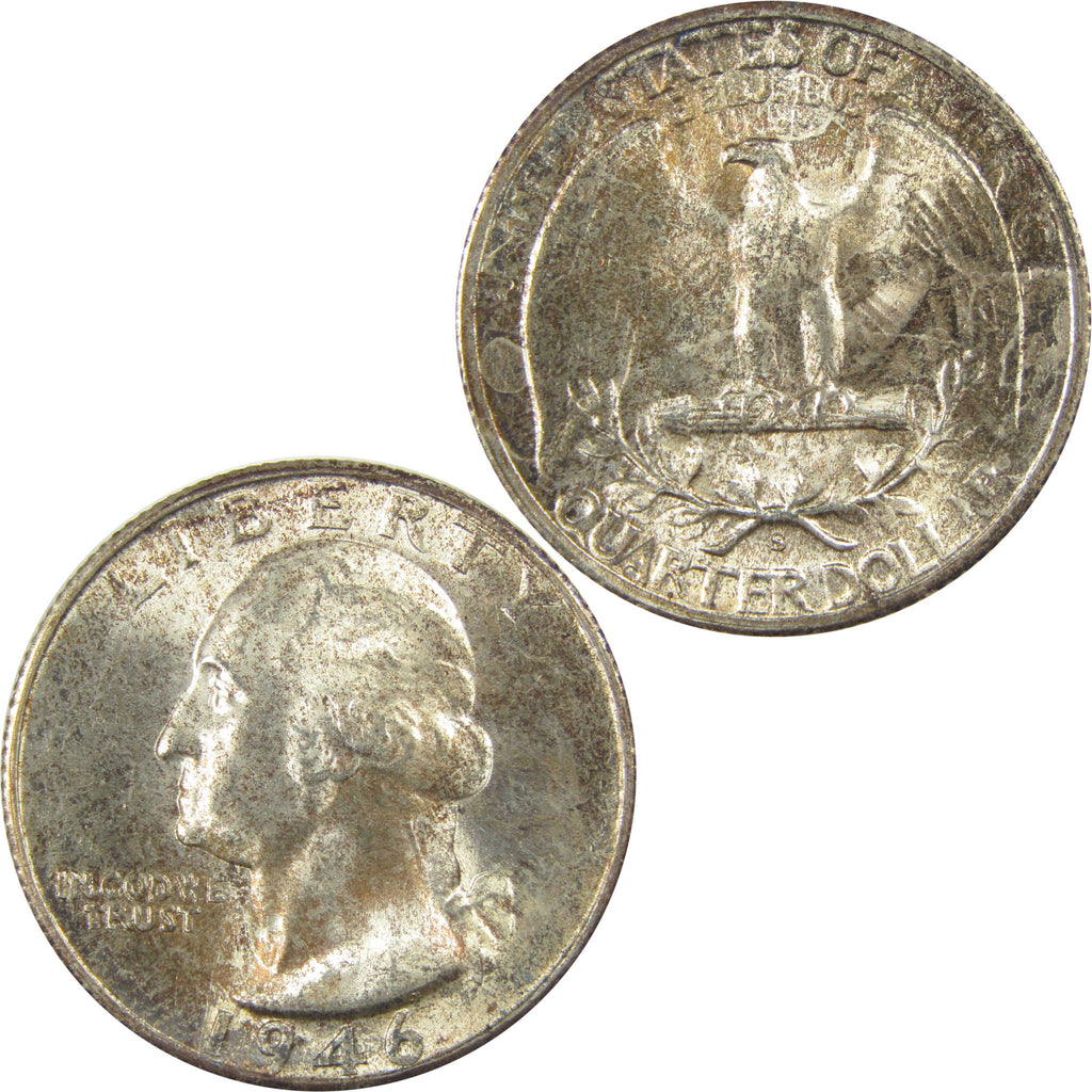 A genuine 1946 S Washington Silver Quarter Coin, in Uncirculated Mint State Condition. Contains 90% Silver