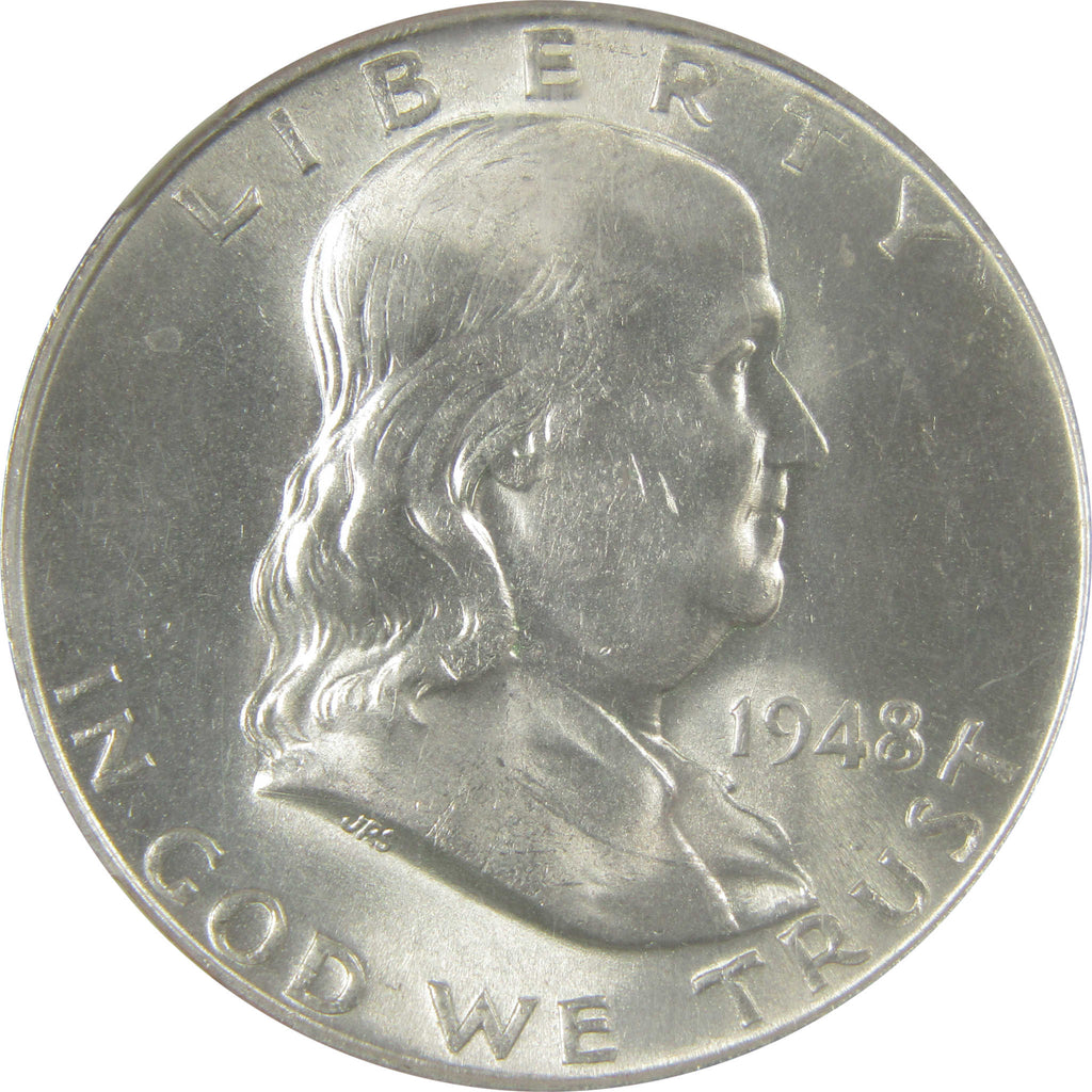 A genuine 1948 Franklin Silver Half Dollar Coin, graded and certified MS 64 FBL by NGC. Contains 90% Silver