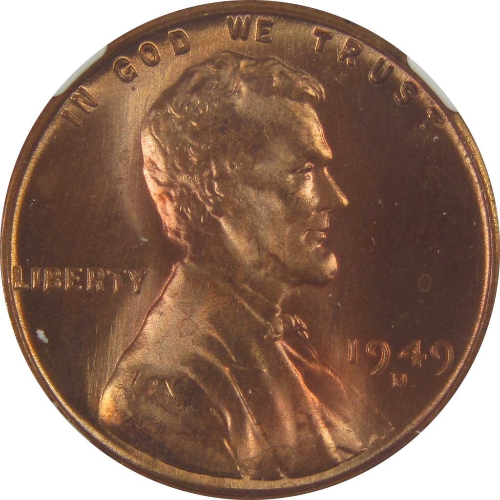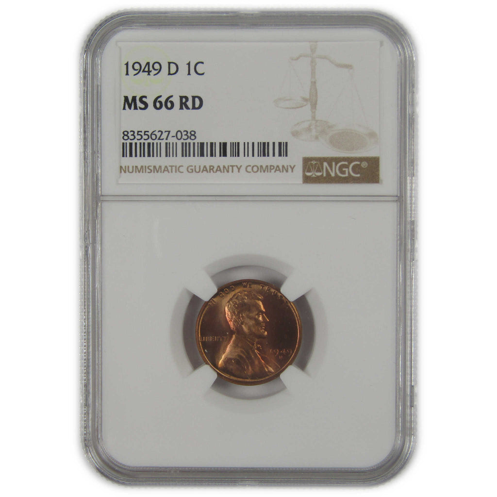A genuine 1949 D Lincoln Wheat Cent Penny Coin, graded and certified MS 66 RD by NGC