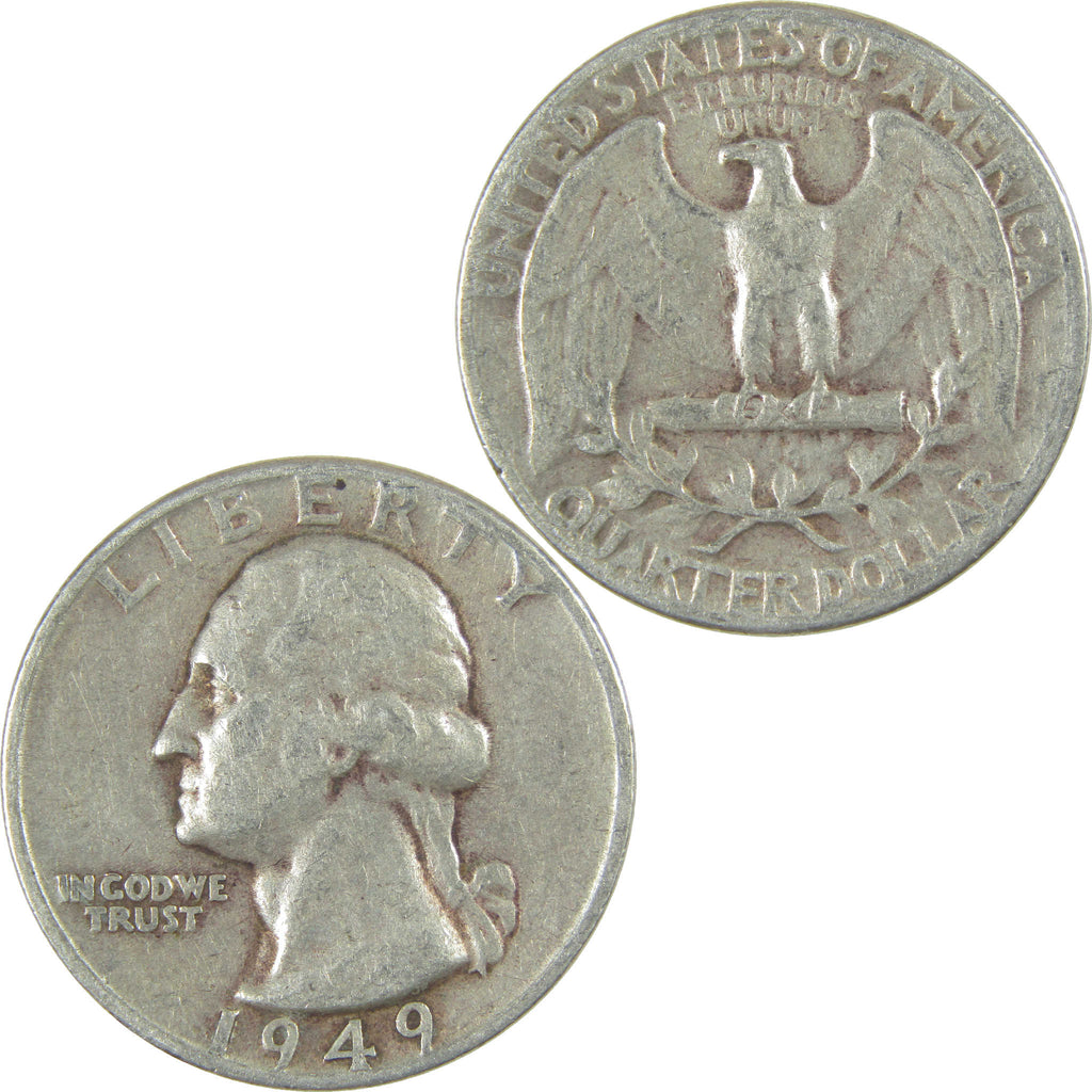 A genuine 1949 Washington Silver Quarter Coin, in VG Very Good Condition. Contains 90% Silver