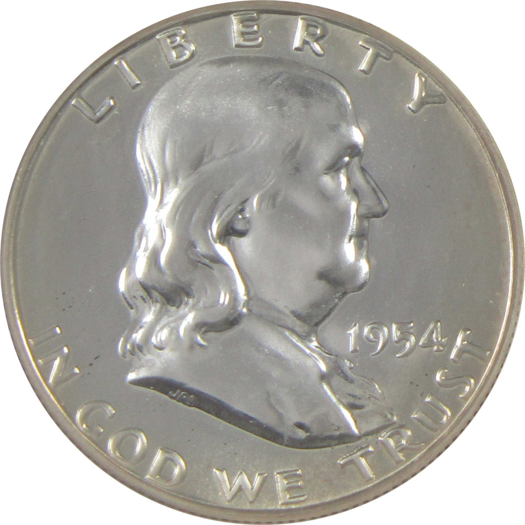 A genuine 1954 Franklin Silver Half Dollar Proof Coin, graded and certified PF 68 by NGC. Contains 90% Silver