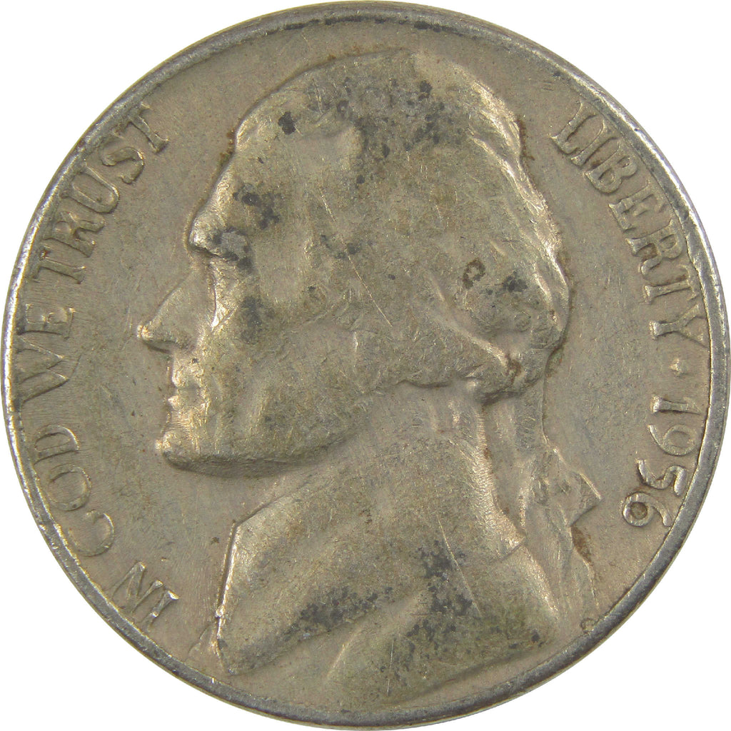 A genuine 1956 D Jefferson Nickel Coin, in Circulated Condition