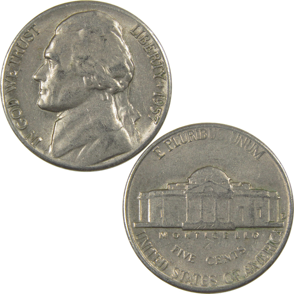 A genuine 1957 D Jefferson Nickel Coin, in Circulated Condition